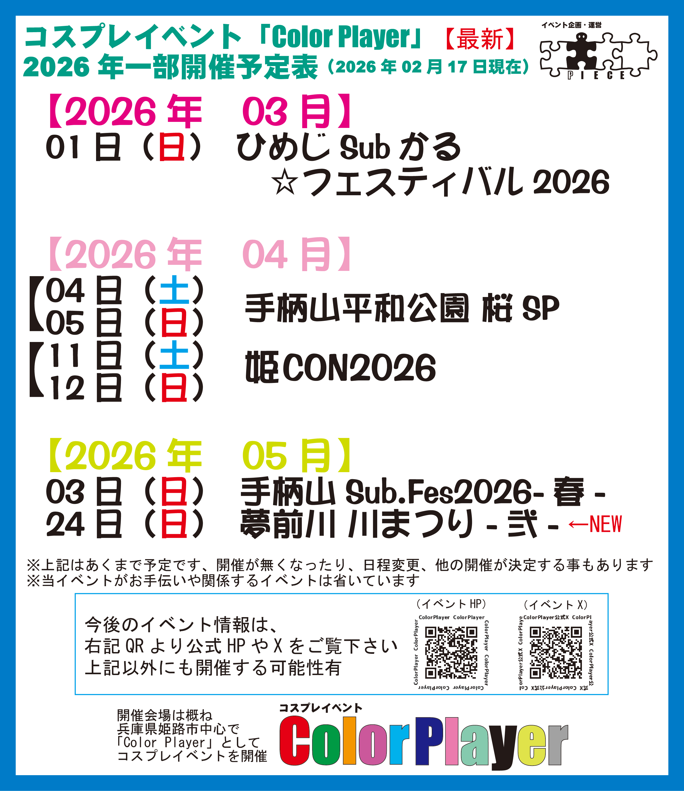 | PIECE(Color Player)応援企業&ショップ等 |